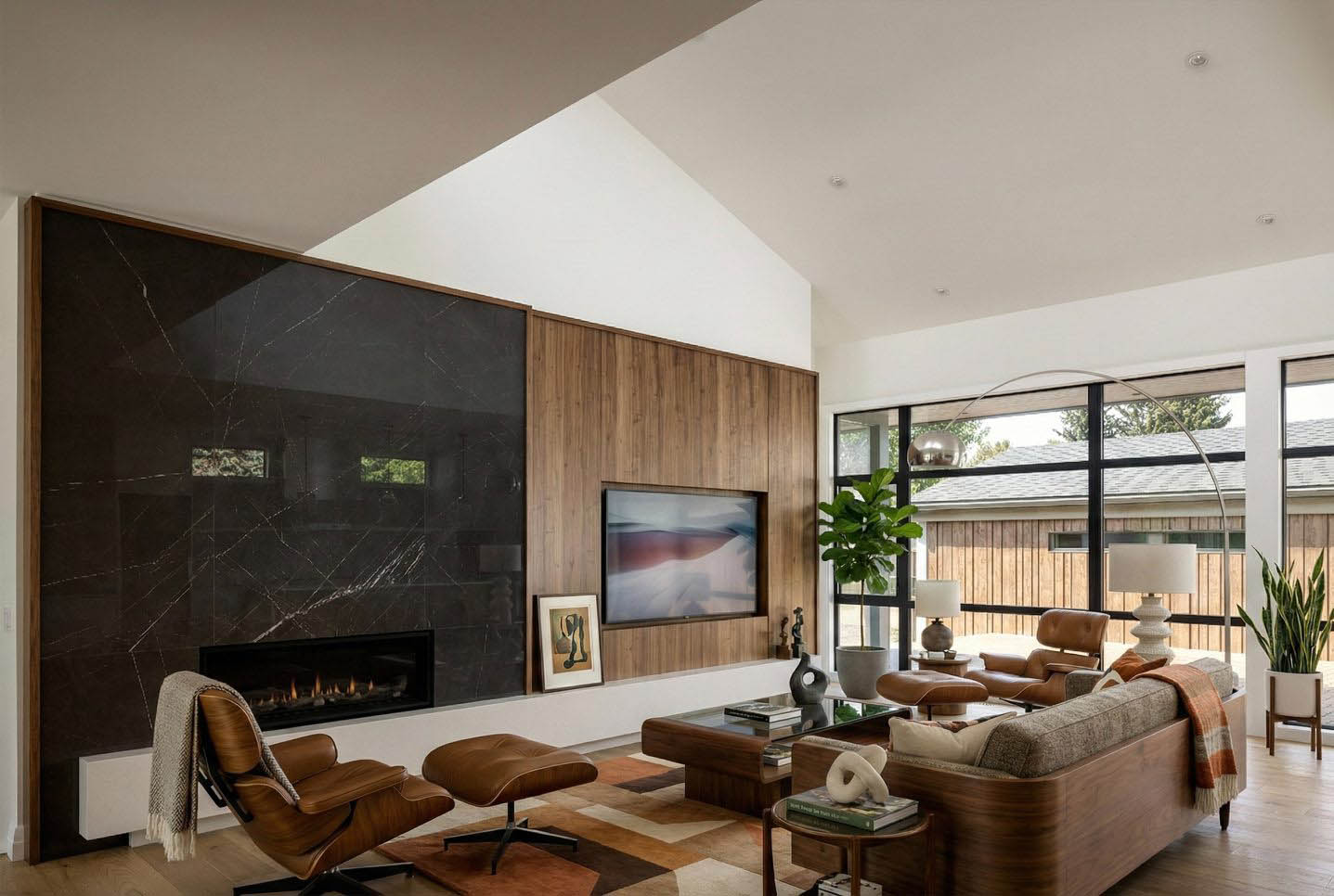 This estate bungalow is thoughtfully designed around a private outdoor courtyard that serves as the heart of the home. Full-height glass walls blur the line between indoors and out, while vaulted ceilings and clerestory windows draw natural light deep into the central living spaces. The result is a bright, tranquil interior that feels both expansive and intimately connected to the landscape—an ideal balance of openness, privacy, and refined comfort.