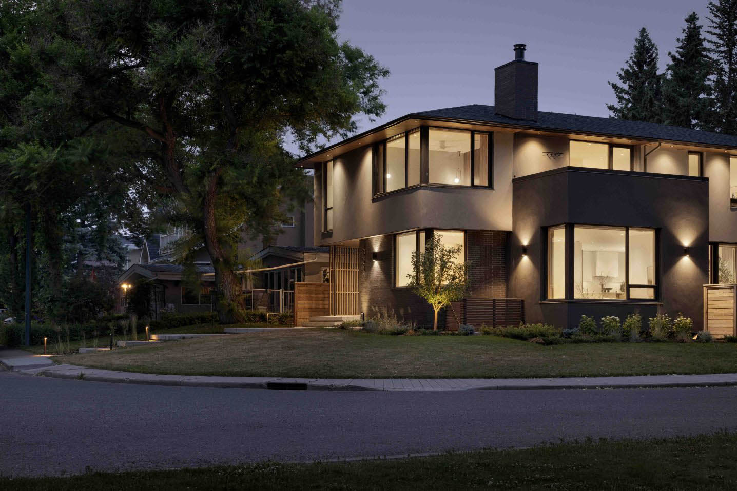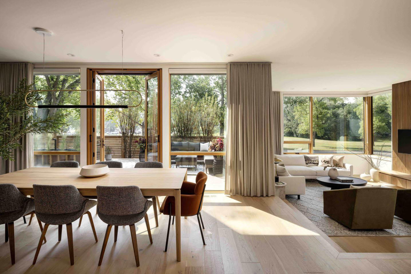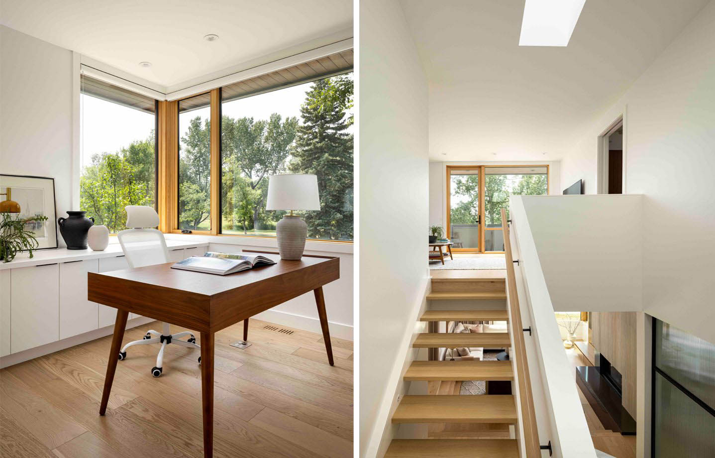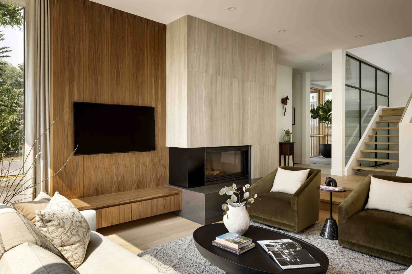This family home channels classic Prairie Modern architecture while embracing its parkside corner lot. Layered massing and textured exterior materials create a dynamic experience as you approach the home. Expansive windows and thoughtfully placed living spaces frame curated views of the surrounding green space, bringing home and nature together at every turn.