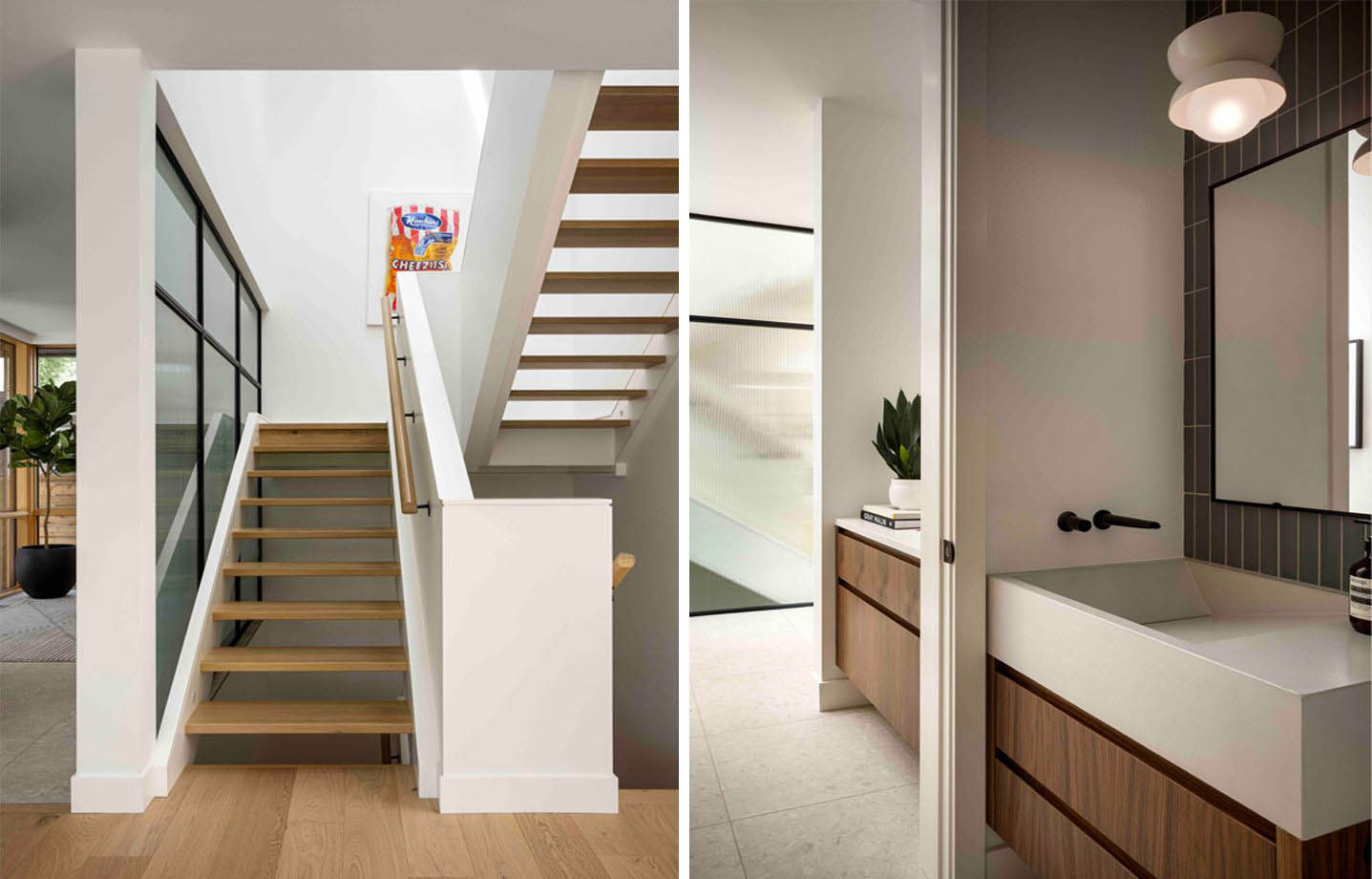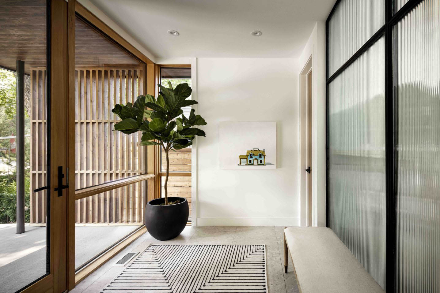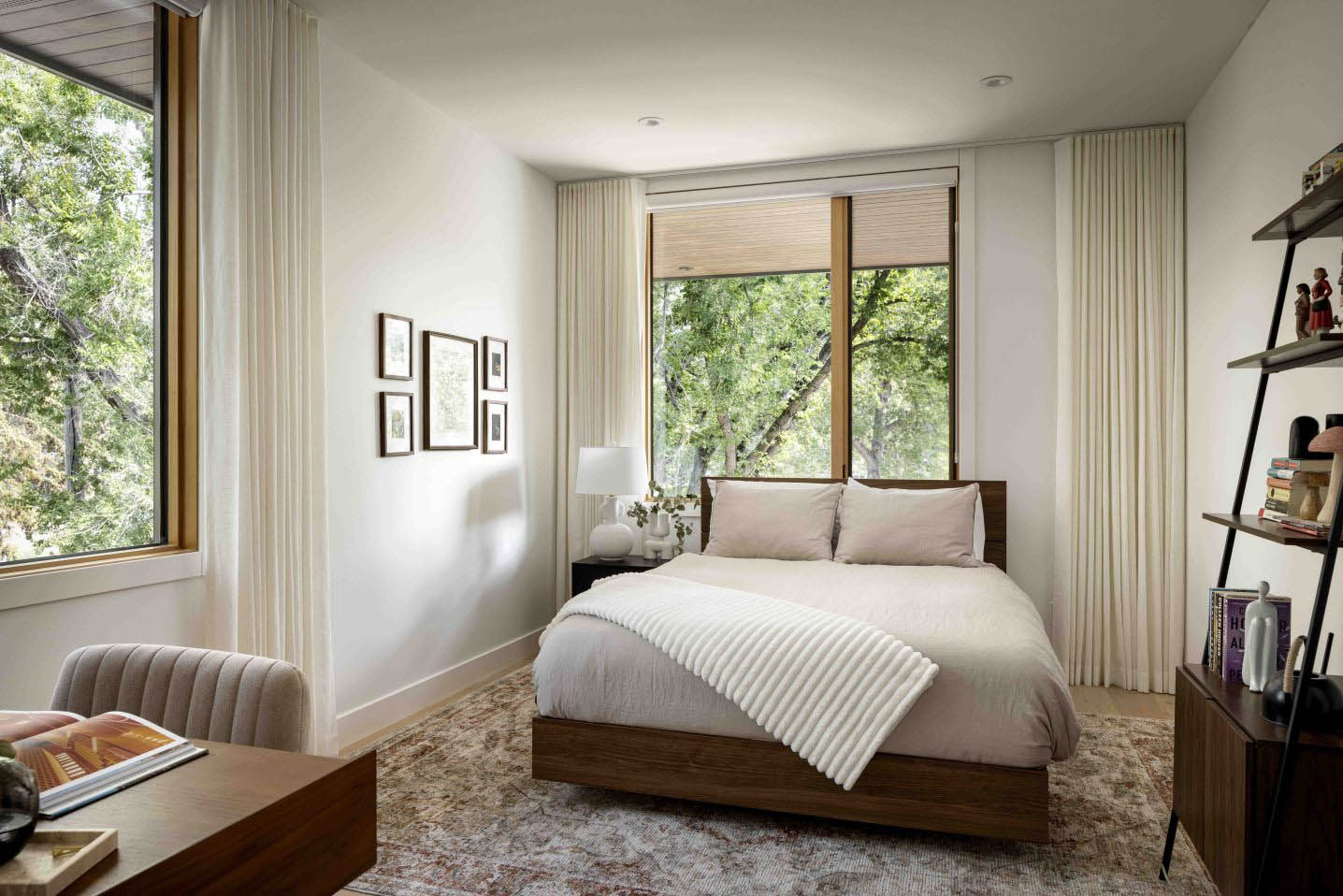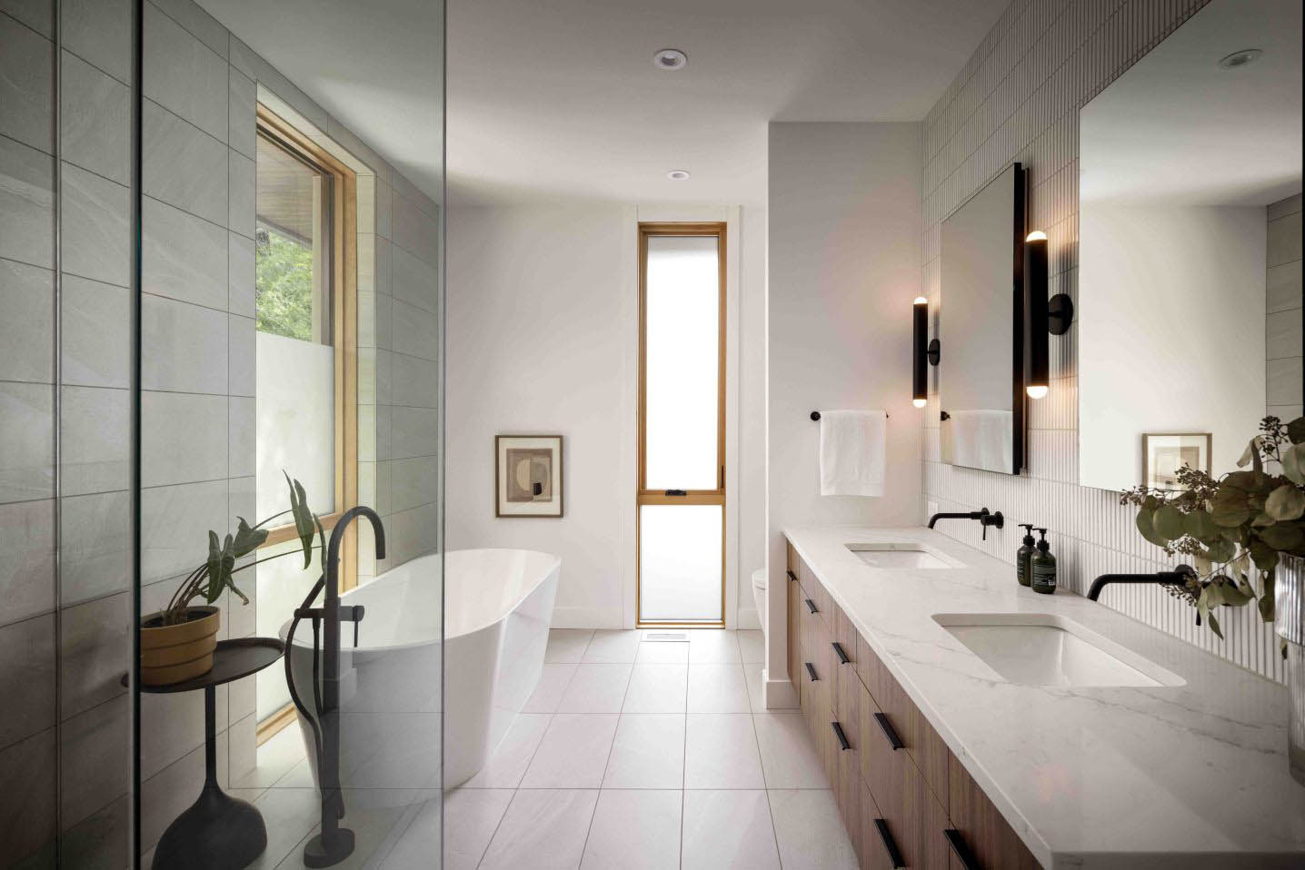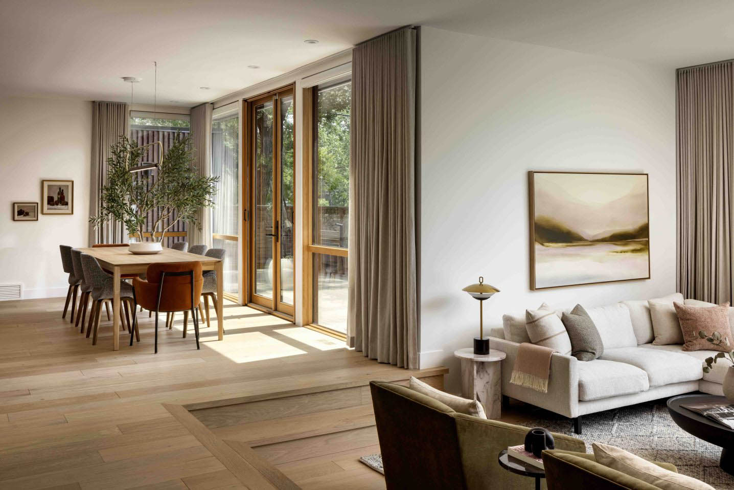 This family home channels classic Prairie Modern architecture while embracing its parkside corner lot. Layered massing and textured exterior materials create a dynamic experience as you approach the home. Expansive windows and thoughtfully placed living spaces frame curated views of the surrounding green space, bringing home and nature together at every turn.