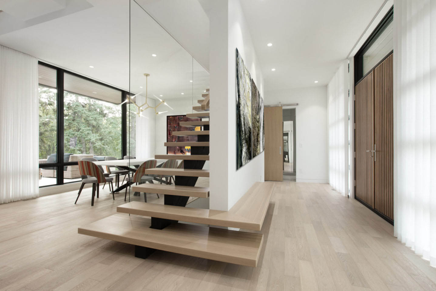 A stunning custom home thoughtfully crafted to maximize a shallow, triangular lot perched above a ravine in Edmonton’s river valley. Expansive full-height, high-performance windows flood all principal rooms with natural light and frame serene forest views. This exceptional project was realized in collaboration with TriArc Developments and Connie Young Design.